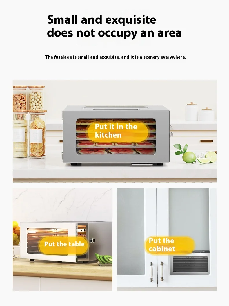 This dehydrator operates efficiently with a power consumption of less than 800W, making it an energy-saving choice for your kitchen.