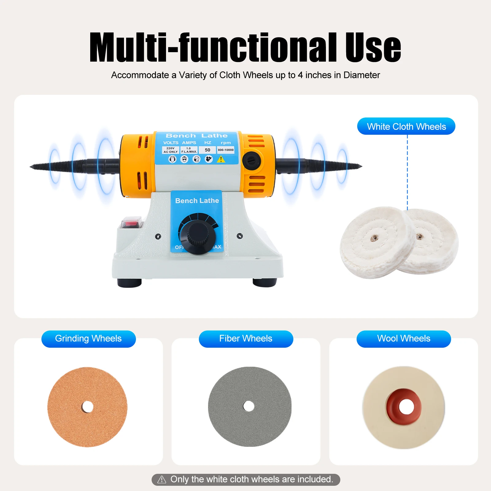 Multi-functional Use: Both sides of the product allow you to do sanding and polishing work at the same time, making your work more efficient and convenient. Two tapered spindles can be connected to a 0.315-inch motor shaft to accommodate a variety of cloth wheels up to 4 inches in diameter to polish items of different materials for different sanding results.