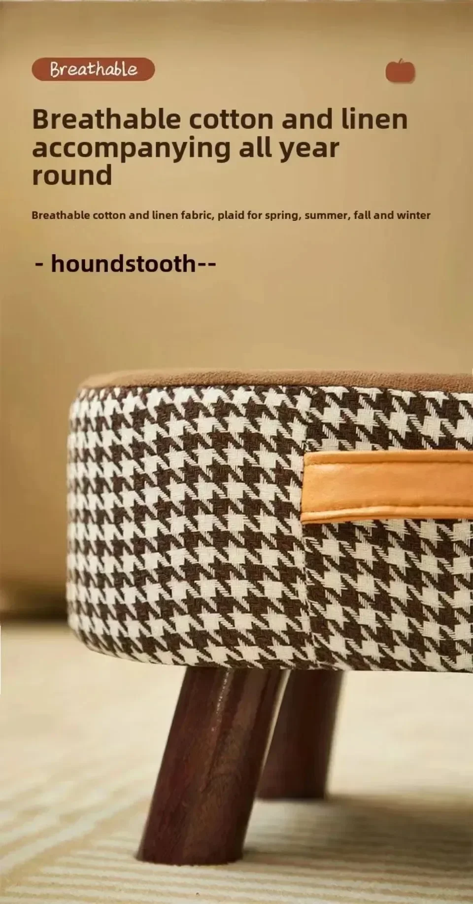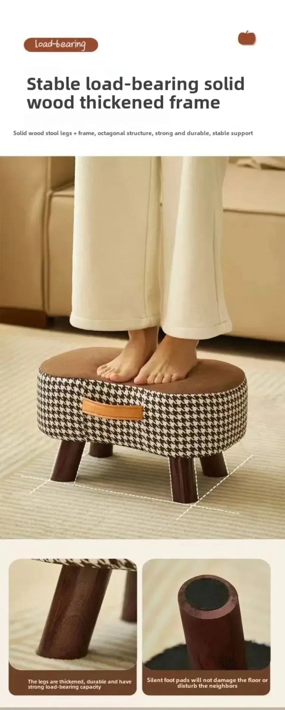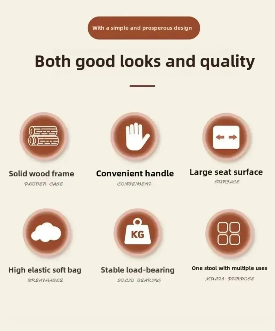6. Stable load-bearing solid wood thickened frame, solid wood stool legs+frame, external eight character structure, sturdy and durable, stable support
