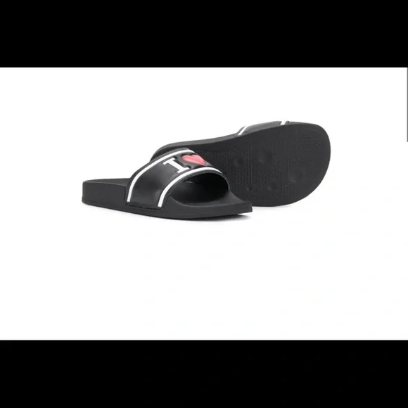 Dolce & Gabbana Kids’ elegantly constructed footwearThese black slides feature a slip-on style, a moulded footbed and a flat rubber sole.Made in ItalyCompositionSole: Rubber 100%Lining: Calf Leather 100%Outer: Calf Leather 100%ONLY WORN ONCE LIKE NEW NO RETURNSUnisexAdults can wear it too ( I AM A SIZE 7 1/2 IN WOMENS AND THESE SLIDES FIT)