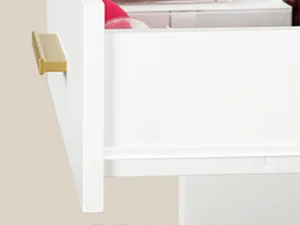 Plenty of Storage Space The storage space on the countertop and table has different sizes and shapes to meet the different storage needs of the user. 2 drawers and 4 open shelves of the dressing table provide enough storage space for cosmetics, hair dryers, jewellery and other beauty essentials. In addition, the lower support plate of the chest of drawers provides additional storage areas for bags.