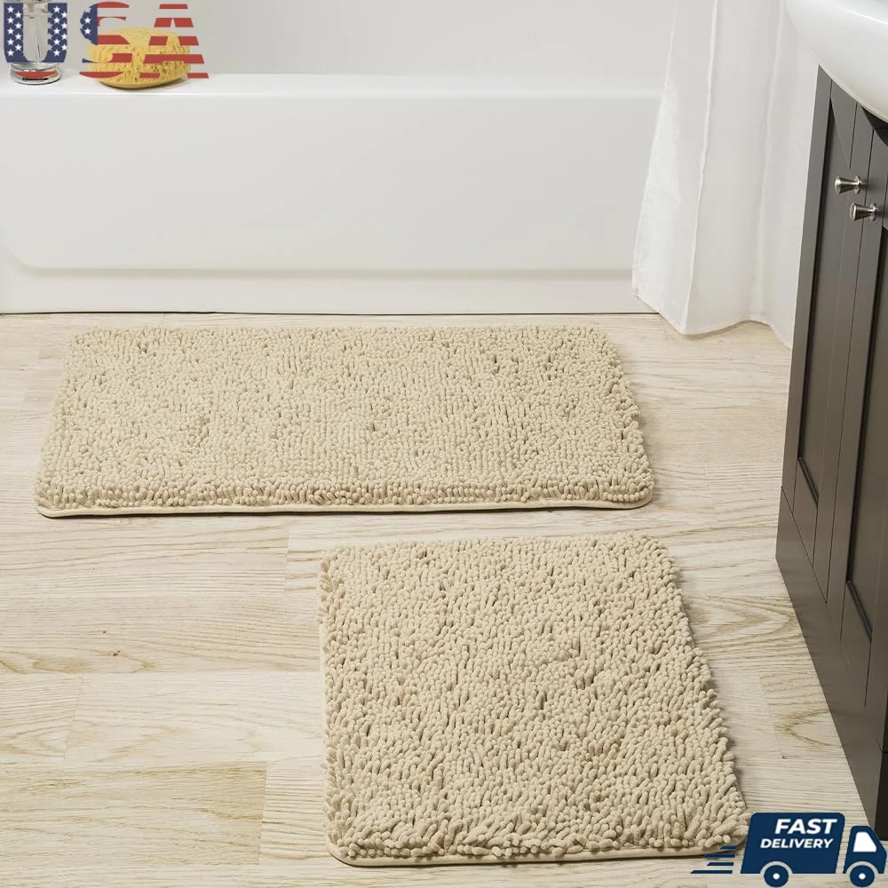 Memory Foam Bath Mat Shag Rug Non-Slip Plush Chenille Bathroom Mats Machine Washable Soft Absorbent Gray 2 Piece Set