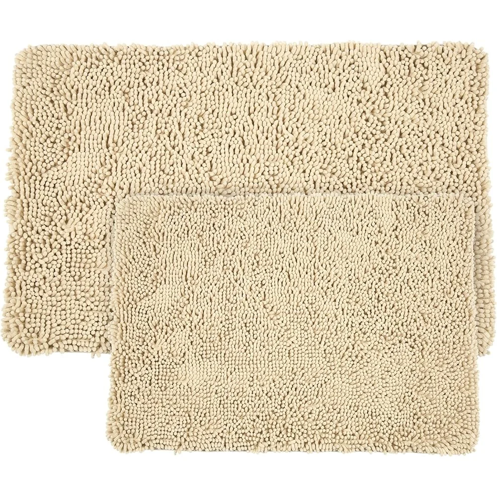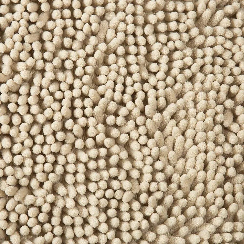 About this item    Super Plush Polyester Chenill    Memory Foam Core, Non-Slip Backing    Color: Ivory, Pile Height: 1 inch    Care Instructions: Machine Wash Cold, Gentle Cycle, Do Not Bleach, Line or Tumble Dry Low, Cool Iron If Necessary    Dimensions: Standard Rug: 24 inches x 17 inches x 1. 25 inches, Oversized Rug: 32 inches x 21 inches x 1. 25 inches