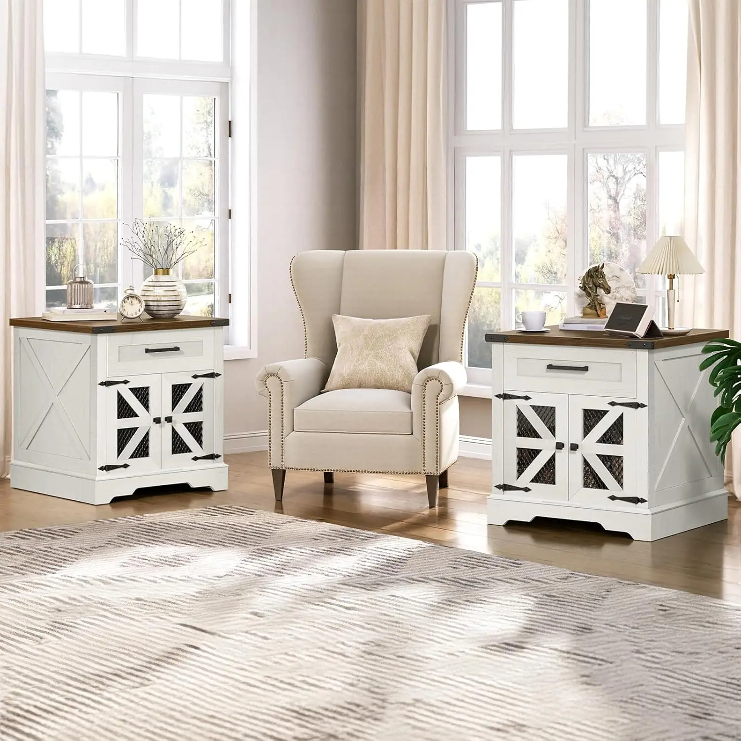 Spacious Storage: Featuring a drawer with a size of 18.7"L x 14.4"W x 4.5"H, this large end table can store remotes, charging cables, etc. The mesh barn door design ensures a hidden compartment for storage baskets, books, magazines, and daily essentials
